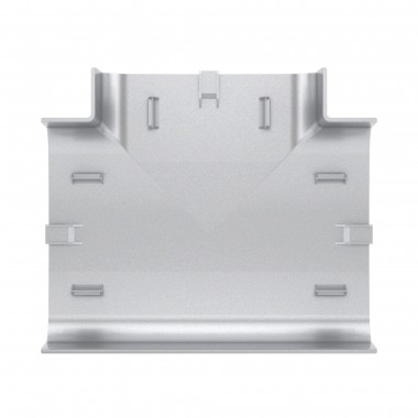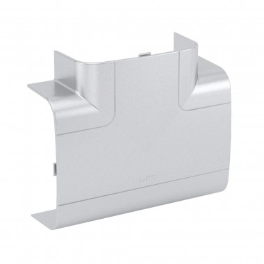 Тройник (Т-образный отвод) 110х50. Назначение: эстетичное оформление мест Т-образного соединения кабельных коробов. Характеристики: материал накладки – АБС-пластик; материал базы и разделителей – ПНД. Комплект поставки: внешняя декоративная накладка; внутренняя база с разделителем; инструкция по монтажу. Размер 110х50. Цвет: серебристый металлик RAL 9006