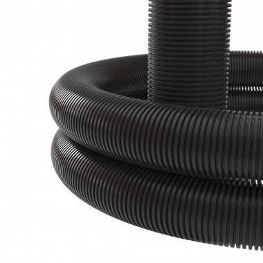 Двустенные гибкие электротехнические трубы могут использоваться как для прокладки кабеля, так и для организации ливневой организации. В первом случае удобнее использовать трубы с протяжкой - она позволяет легко проложить кабель во внутреннем пространстве трубы. Труба имеет высокую кольцевую жесткость. Диаметр 160 мм, поставляется бухтами по 50 метров. Материал - ПНД.