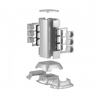 Колонны серии "In-liner Aero применяются для организации рабочих мест в зонах с ограниченным пространством и в помещениях, где рабочие места расположены далеко от стен. В них устанавливаются ЭУИ серий "Viva", "Brava". Внутреннее пространство колонны разделяется алюминиевой перегородкой на две или три секции. Стойка высотой 0,35 м устанавливается на пол и может вмещать до 16 модулей ЭУИ. Цвет - светло-серебристый металлик.