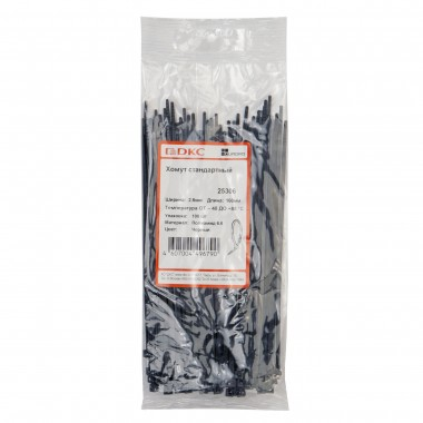 Хомуты (или, иначе, стяжки) – это популярный крепежный элемент, применяющийся при монтажных или строительных работах. Хомуты ДКС прочны, устойчивы к коррозии и воздействию агрессивных сред, что позволяет использовать их не только внутри помещений, но и на улице. С помощью гибких хомутов можно создавать как жесткие, так и подвижные соединения. Ребристые внутренняя и внешняя стороны обеспечивают надежную фиксацию и предотвращает соскальзывание хомута. Изделие имеет длину 160 мм, ширину 2,6 мм, устойчивость к растяжению 80 H. Не рекомендуется использовать стяжки в зонах, где они будут подвергаться воздействию прямых солнечных лучей.