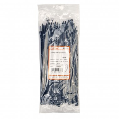 Хомуты (или, иначе, стяжки) – это популярный крепежный элемент, применяющийся при монтажных или строительных работах. Хомуты ДКС прочны, устойчивы к коррозии и воздействию агрессивных сред, что позволяет использовать их не только внутри помещений, но и на улице. С помощью гибких хомутов можно создавать как жесткие, так и подвижные соединения. Ребристые внутренняя и внешняя стороны обеспечивают надежную фиксацию и предотвращает соскальзывание хомута. Изделие имеет длину 250 мм, ширину 4,8 мм, устойчивость к растяжению 220 H. Не рекомендуется использовать стяжки в зонах, где они будут подвергаться воздействию прямых солнечных лучей.