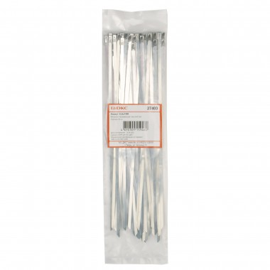 Хомуты (или, иначе, стяжки) – это популярный крепежный элемент, применяющийся при монтажных или строительных работах. Хомуты ДКС из нержавеющей стали прочны, туго затягиваются, устойчивы к коррозии, воздействию агрессивных сред и солнечных лучей, что позволяет использовать их не только внутри помещений, но и на улице. С помощью таких хомутов можно создавать как жесткие, так и подвижные соединения. Замок на хомуте обеспечивает надежную фиксацию, а обработка краев предупреждает повреждение проводов изделиями. Стальные хомуты могут применяться при температуре от – 80оС до +538оС. Ширина изделия – 4,6 мм, длина – 150 мм. В упаковке 50 штук.