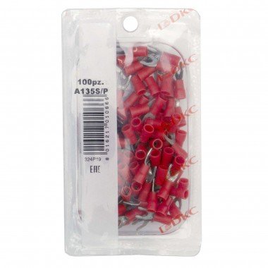 Кабельные наконечники – это специальные аксессуары, которые используются для простого подсоединения медных жил к оборудованию и механизмам и подключения индикаторов. Они также могут использоваться в низковольтных цепях. Изолированные наконечники обжимаются непосредственно через изоляцию, поэтому ДКС использует для изоляции только качественные материалы. Наконечники соединяются методом «вилка-розетка» («папа-мама»). Материал контактной части – медь. Наконечник с изолированным фланцем имеет форму вилки. Луженое покрытие обеспечивает защиту от коррозии. Номинальное поперечное сечение - 0,25 - 1,5 мм2. Цвет изоляции - красный.