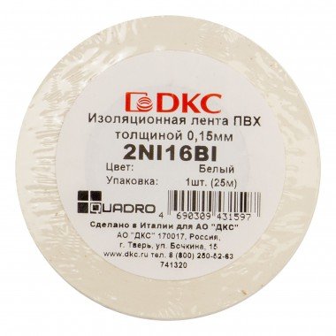 Изоляционная лента - обязательный спутник любых электротехнических работ, профессиональных и бытовых. Качественная изоляция необходима при соединении/сращивании проводов. Очень важно, чтобы лента демонстрировала отличные изоляционные качества, хорошо клеилась и надолго сохраняла свои свойства. Изоляционная лента ДКС соответствует всем этим пожеланиям. Она надежно фиксируется и долго служит, защищая пользователя от случайных электротравм, а место соединенияч проводов - от загрязнения и попадания влаги. Ширина - 19 мм, длина - 25 м. Цвет - белый.