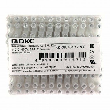 DKC 43303NY КЛЕММНИК Полиамид 6.6, 3p,110°С,450V, 32A, 4мм.кв.