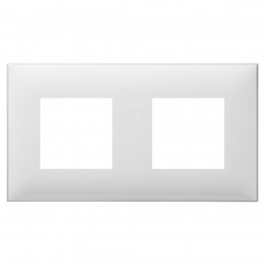Рамка имеет 2 места под электроустановочные изделия (максимальная вместимость – 4 модуля), может размещаться как горизонтально, так и вертикально. Габаритные размеры: 160х90 мм. Материал – термопласт.