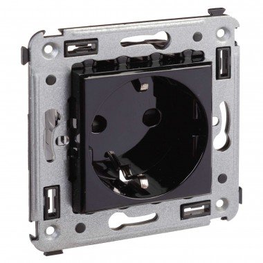 Розетка в стену, 2P+E, с з/ш, "Avanti", "Черный квадрат"