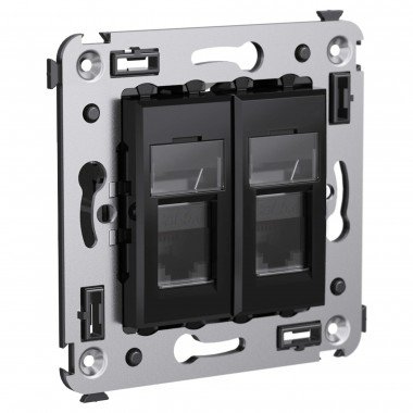 Компьютерная розетка двойная используется для подключения компьютерной техники и соединения с патч-панелью. Компьютерная розетка предназначена для скрытого монтажа в стену. Розетка RJ-45 категории 6 может использоваться для организации сетей с частотой до 250 МГц и передавать данные на большие расстояния. Кабель этой категории имеет повышенную защиту от помех. Материал розетки – металл, термопласт. Пластиковые части изделия выполнены в цвете "Черный квадрат". Это таинственный, темный и глубокий оттенок, несущий отголоски традиций русского авангарда.