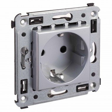 Материал: металл, термопласт. Пластиковые элементы устройства имеют стильный оттенок "Закаленная сталь" и сдержанный матовый блеск, придающий электроустановочному изделию утонченность и изящество.