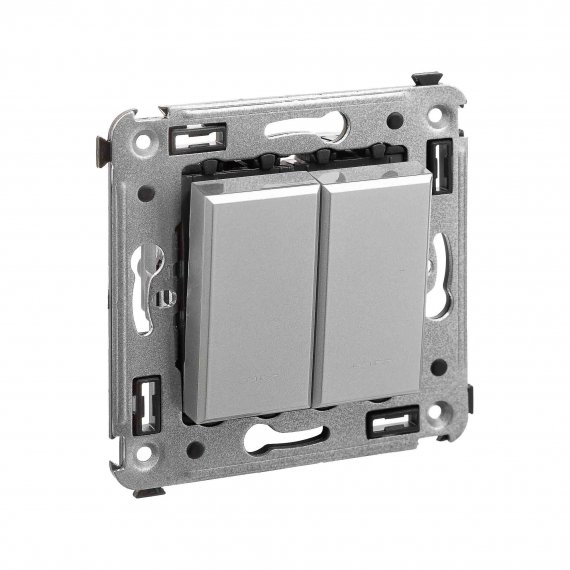 Инвертор двухклавишный в стену, "Avanti", "Закаленная сталь"