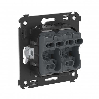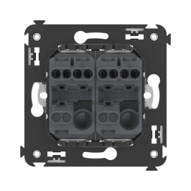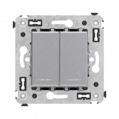 Кнопка двухклавишная. Назначение: для монтажа в подрозеточные коробки глубиной не менее 45 мм (код 59301). Служит в качестве кратковременного включения источника питания энергией. Характеристики: 2 модуля, диаметр отверстий для ввода кабелей – 3 мм (по 2 отверстия на одну клемму); винтовые зажимы;. шаблон для зачистки кабеля – 11 мм; номинальный ток – 10 A; номинальное напряжение – 230 В; фиксация в подрозеточные коробки при помощи каркаса с лапками (код 4400802) и. саморезов. Цвет: "Закаленная сталь".