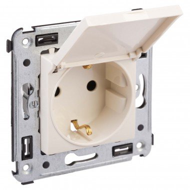 Розетка с крышкой в стену, 2P+E, с з/ш, "Avanti", "Ванильная дымка"