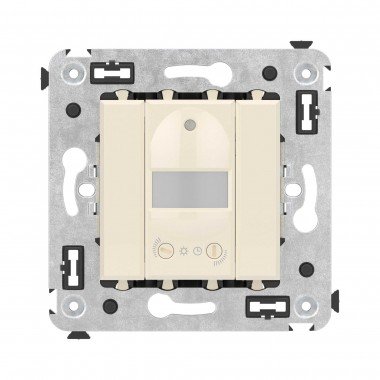 Датчик движения. Назначение: для монтажа в подрозеточные коробки глубиной не менее 45 мм (код 59301). Используется для автоматического включения/выключения. света. Характеристики: диаметр отверстий для ввода кабелей – 3 мм;. винтовые зажимы; шаблон для зачистки кабеля – 11 мм; расстояние обнаружения – от 2 до 12 м; угол охвата – 150°; время задержки отключения – от 10 с до 7 мин.; настройка светочувствительности датчика; настройка порога освещенности; фиксация в подрозеточные коробки глубиной не менее 45 мм при помощи каркаса с лапками (код 4400802) и саморезов. . Цвет: "Ванильная дымка".