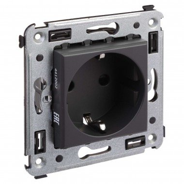 Розетка в стену, 2P+E, с з/ш, "Avanti", "Черный матовый"