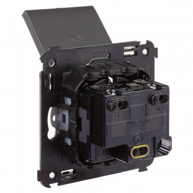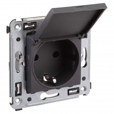 Розетка с крышкой в стену, 2P+E, с з/ш, "Avanti", "Черный матовый"
