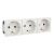 Электрические розетки, штекерные, с заземлением и со шторками, моноблок тройной. Назначение: подключение оргтехники, бытовых приборов и т. п.; экономия времени на подключении кабеля 60 %. Характеристики: в блоке всего 3 клеммы для подключения кабеля – все 3 розетки подключаются одной клеммой; имеется заземление; диаметр отверстий для ввода кабелей - 3 мм (по 2 отверстия на клемму); соответствие ПУЭ, пункт 7.1.49 - имеются автоматические закрывающиеся шторки; номинальный ток – 16 А (на весь блок); номинальное напряжение - 250 B. Кол-во модулей: 6. Установочный размер: 45х150. Цвет: белый