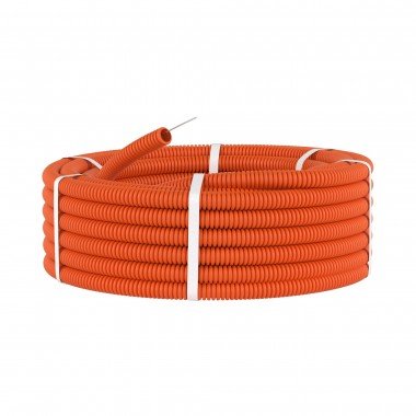Гибкая гофрированная труба предназначена для прокладки в ней электрических, компьютерных, телевизионных кабелей. Она имеет проволочную протяжку для упрощения прокладки кабеля. Труба такого типа отличается повышенной прочностью и может использоваться в монолитном бетоностроении и для скрытой прокладки в стяжке полов (при этом основание должно быть выполнено из несгораемого материала) или же в штробах стен. Труба обеспечивает степень пыле- и влагозащиты до IP 55 (при использовании специальных аксессуаров), устойчива к старению. Диаметр трубы – 25 мм. Материал – полиэтилен низкого давления (ПНД). Тяжелые гибкие гофрированные трубы могут монтироваться и эксплуатироваться при широком диапазоне температур: - от -40°С до +90°С. Длина – 50 метров.