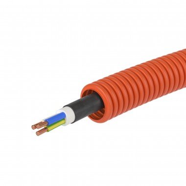 Электротруба - это труба с уже протянутой электропроводкой. Электротрубы ДКС выпускаются с различными вариантами кабеля. Материал - полиэтилен низкого давления. Диаметр - 16 мм. Цвет - оранжевый. Кабель - ВВГнг(А)-LS 3х1,5мм² РЭК "ГОСТ+".