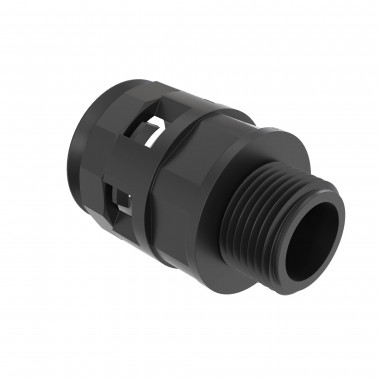 Муфта "труба-коробка" используется для ввода кабеля в оборудование, распаечные коробки, щитки, шкафы. Применение муфты совместно с уплотнителями обеспечивает высокую степень герметизации - до IP 67. Материал не содержит галогенов, а потому может применяться в местах массовых скоплений людей. Муфта имеет метрическую резьбу М20х1,5 и совместим с трубами с номинальным диаметром 17 мм. Материал - полиамид. Цвет - черный.