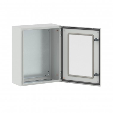"RAM block" – система универсальных металлических корпусов – сварных и сборных, а также стоек управления. Сборные металлические шкафы СE предназначены для защиты от внешнего воздействия оборудования в системах автоматизации и распределения электроэнергии. Корпуса CE имеют всего 4 сварных шва, что повышает прочность конструкции. Корпуса изготавливаются из листовой стали толщиной 1,5 мм с порошковой полиэфирной окраской. Полиуретановый уплотнитель улучшает герметизацию (максимальная степень пыле- и влагозащиты - IP 65 - IP 66). В комплект поставки корпусов входят: фланец, монтажные аксессуары, монтажная плата. По умолчанию шкафы укомплектованы стандартным замком с личинкой под ключ с двойной бородкой, однако замок при необходимости может быть заменен. Сборные металлические шкафы CE соответствуют российским стандартам, они могут устанавливаться в сейсмоопасных зонах и имеют необходимые сертификаты. Корпуса с прозрачной дверью чаще всего используются в системах мониторинга, защиты и автоматизации. Уровень ударопрочности корпусов - IK 10. Закаленное стекло устойчиво к повреждениям. Габариты навесного шкафа: 500х400х200 мм.