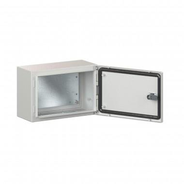 Особенности данной модели - сплошная дверь и монтажная плата. Параметры шкафа: ширина – 300 мм, высота – 200 мм, глубина – 150 мм. Материал – сталь. Цвет – серый, RAL 7035.